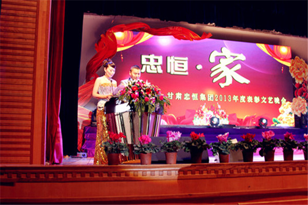 2014年1月8日晚上7点,甘肃ag贵宾会房地产开发集团在平川会展中心召开了2013年度年终表扬暨文艺晚会,集团公司董事长房忠、总经理芦海忠、副总经理叶长林、副总经理李依群、副总经理许海燕、副总经理卫瑞峰、副总经理房吉昌、副总经理赵有涛、财务总监房文昌、物业公司总经理唐君尧、十八项目部经理黄天德、中恒学校校长王世雄、ag贵宾会集团宁夏隆基公司执行董事房正、商贸公司总经理黄雪峰、担保中心主任秦宏林以及集团公司各单位员工、家属600余人加入了表扬大会并寓目了演出 。